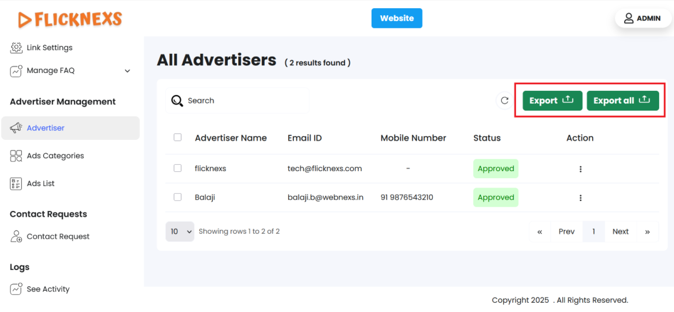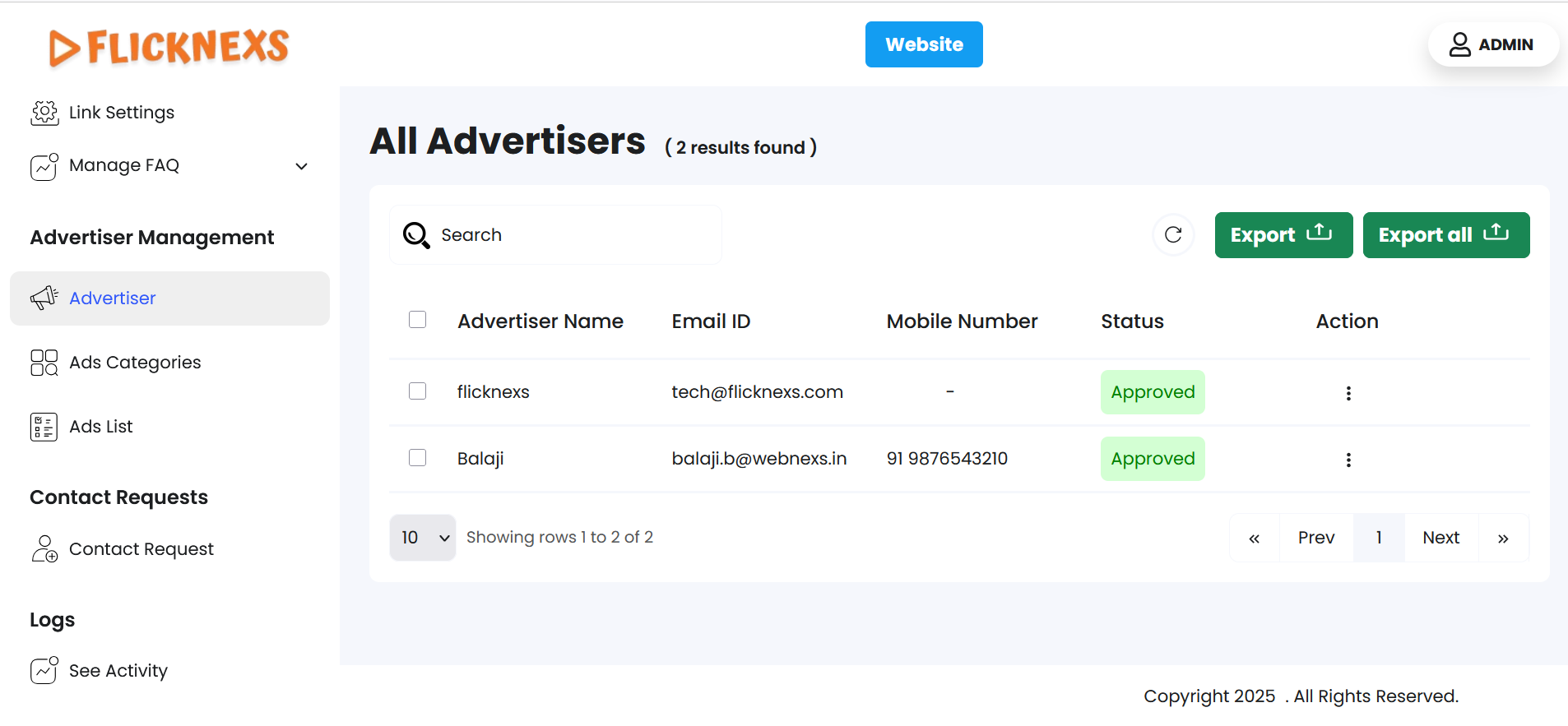 If the admin approves the advertiser then the status will be shown as approved, otherwise it will be shown as disapproved.