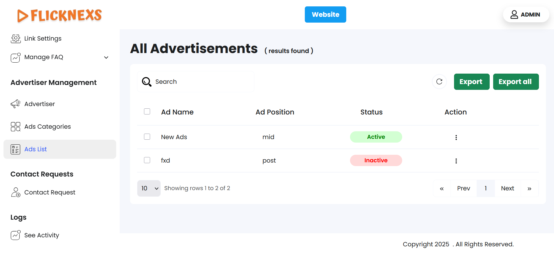 By following these steps, you can efficiently manage your ads through the Admin panel.