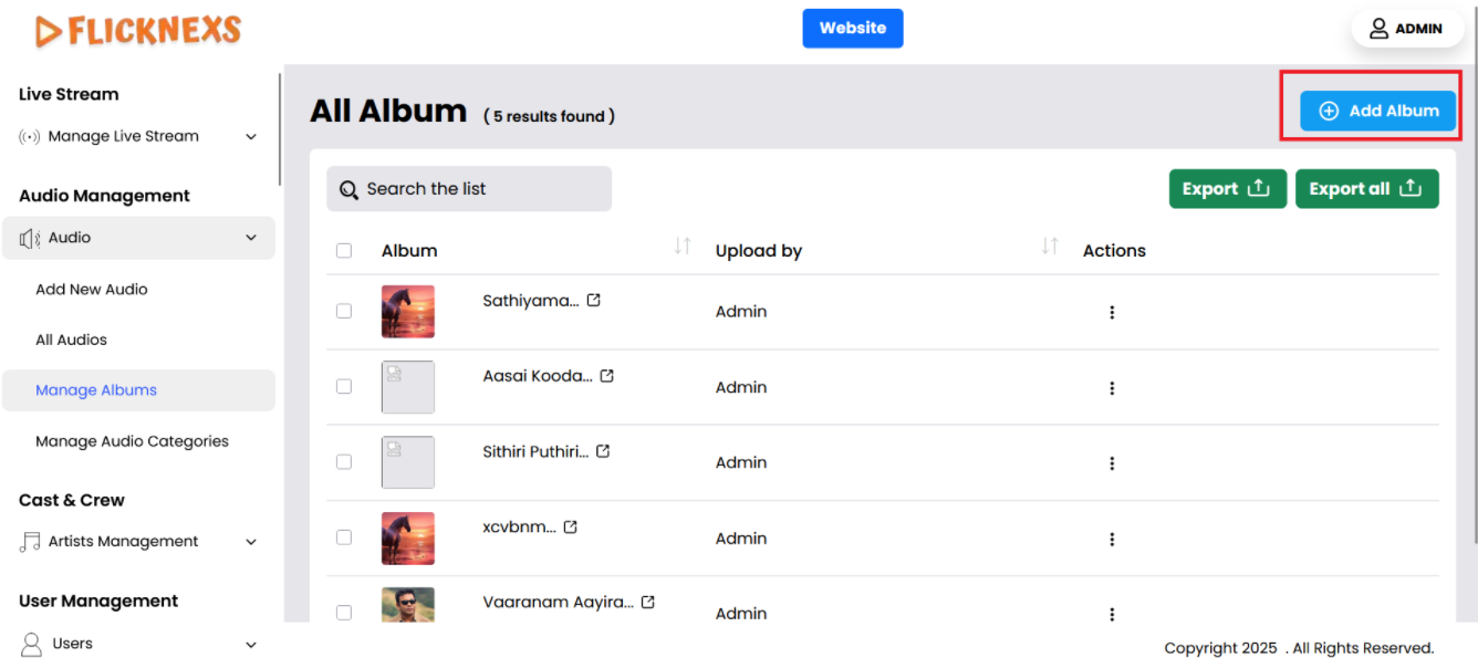- Actions (Edit/Delete): For each album, there will be options to either: