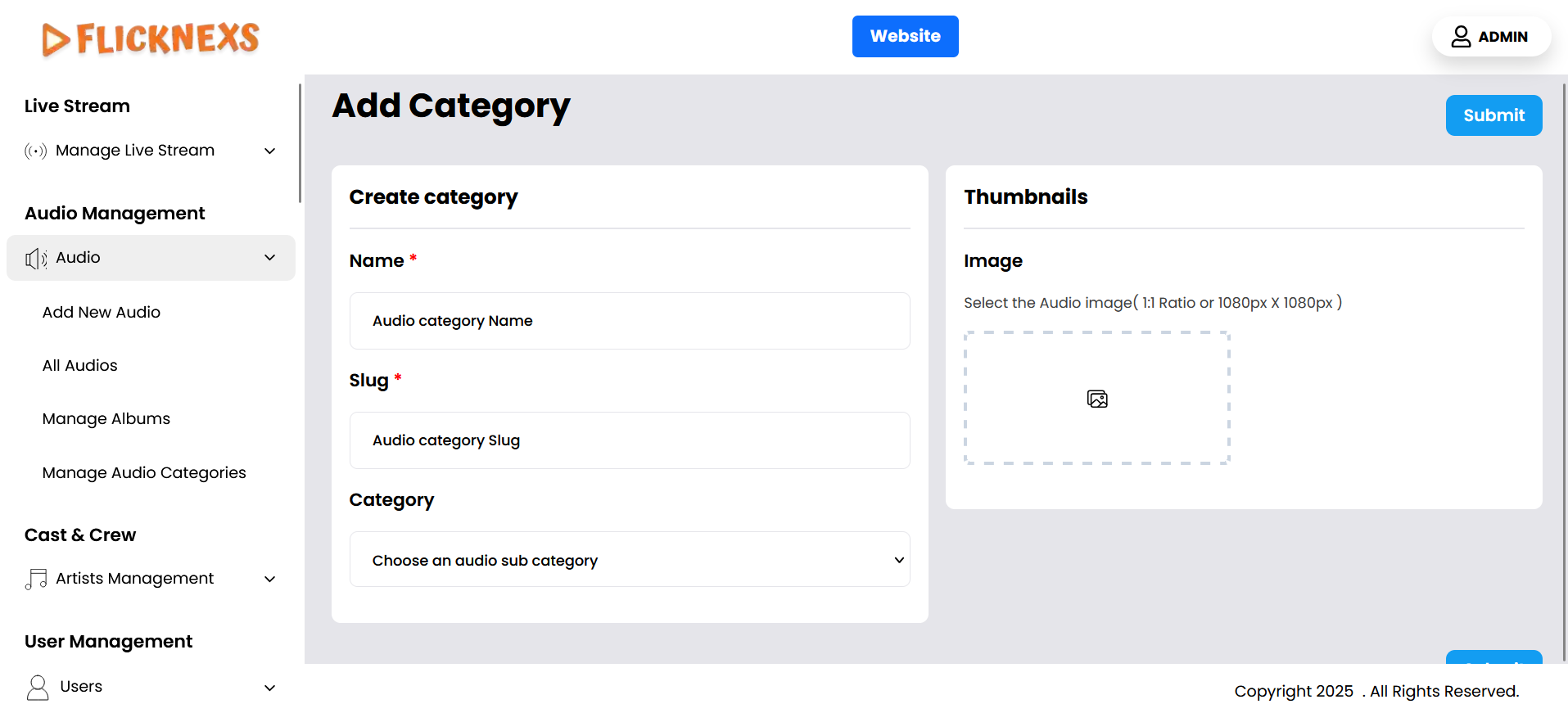 This setup allows for easy management of audio categories, ensuring that the platform remains organized and content is displayed as desired.