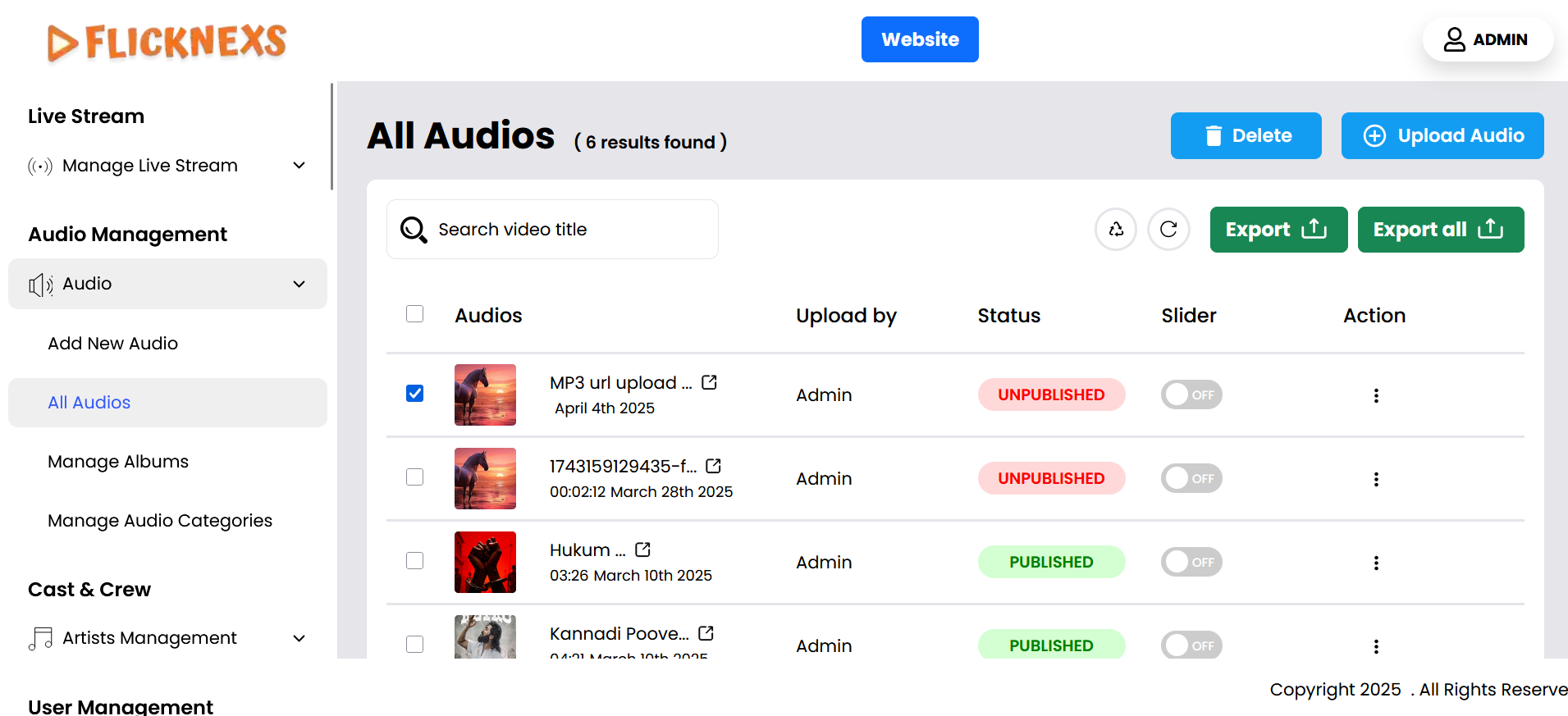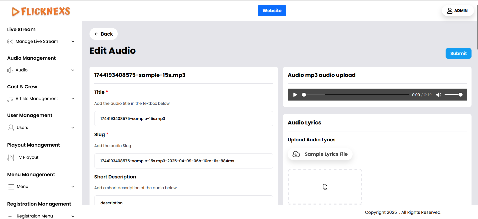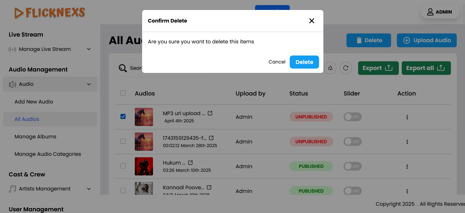 By following these steps, you can efficiently manage your audio content through the Admin panel.