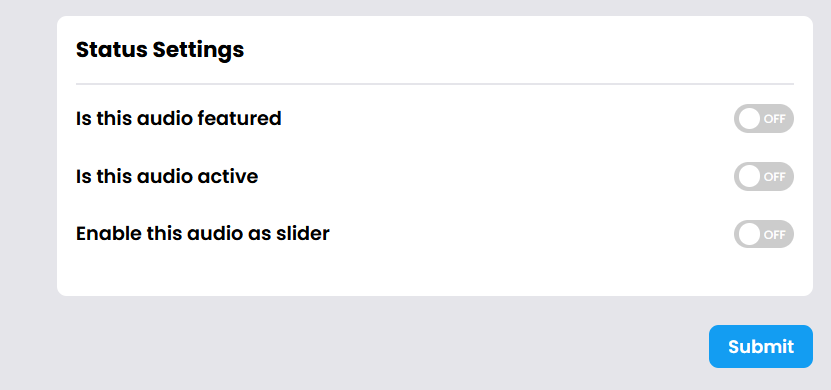 - Is this audio Featured: Enable this if you want the audio file to be featured prominently on the platform (e.g., in special sections or highlights).
