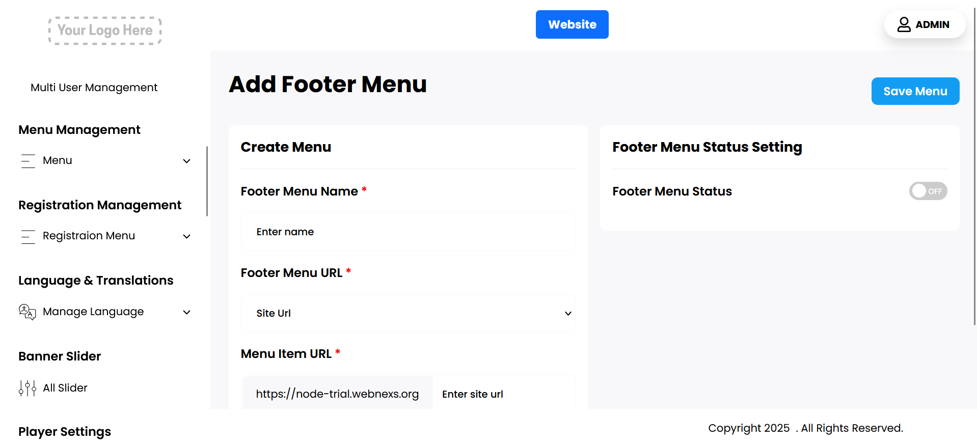 - Footer Menu URL: Next, provide the URL link that the menu item will direct users to when clicked. This can be an internal link to another page on your site or an external link to another website. Ensure that the link is valid and leads to the desired content.