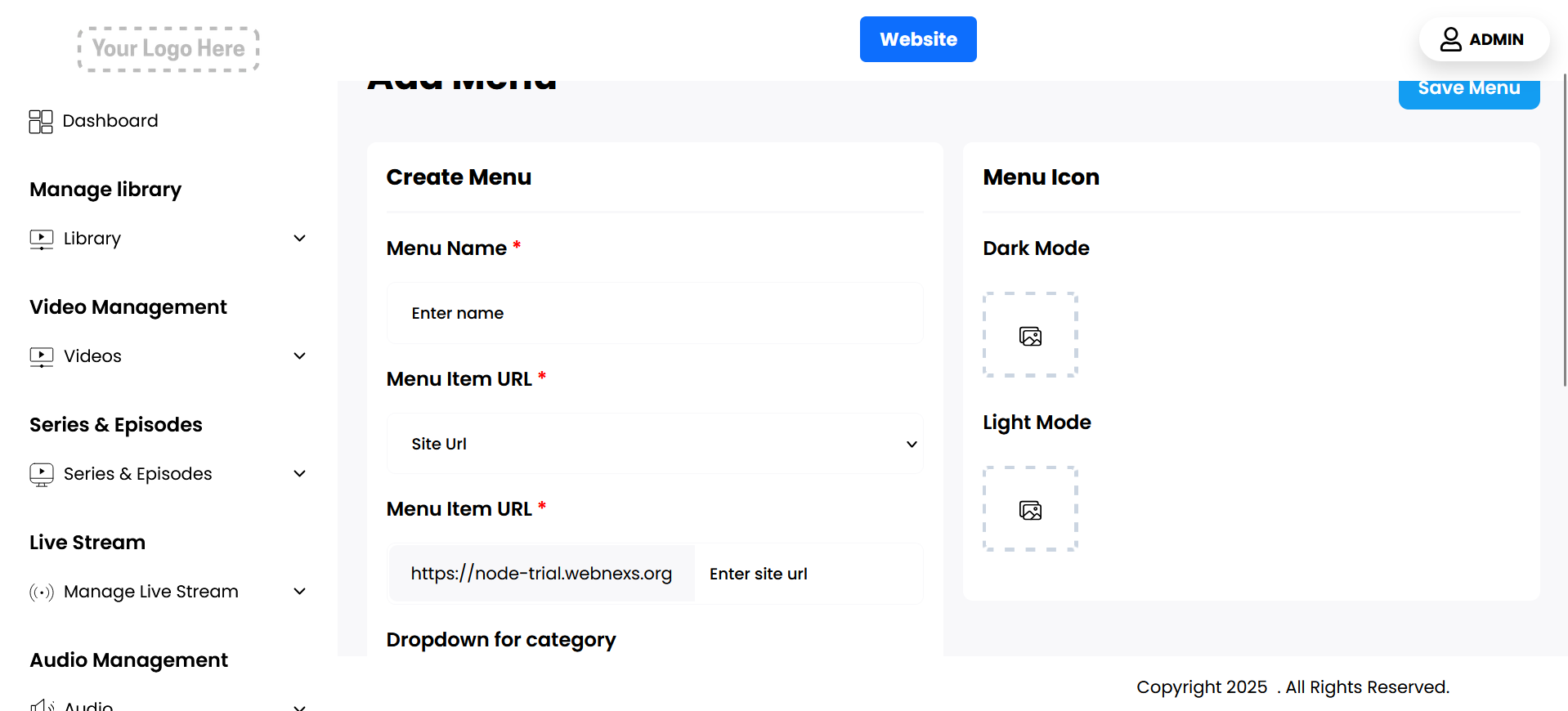 - Drop Down For Category: You can choose a specific category to associate with the menu. If the menu is not tied to any category, you can select “None” for this option.