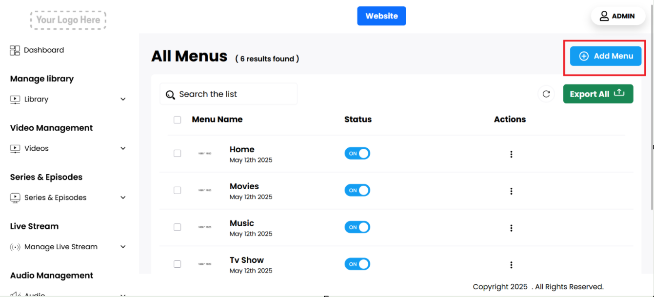 - Actions: You have the ability to edit the menu. This includes changing the name of the menu, updating any details, or modifying its settings as needed.