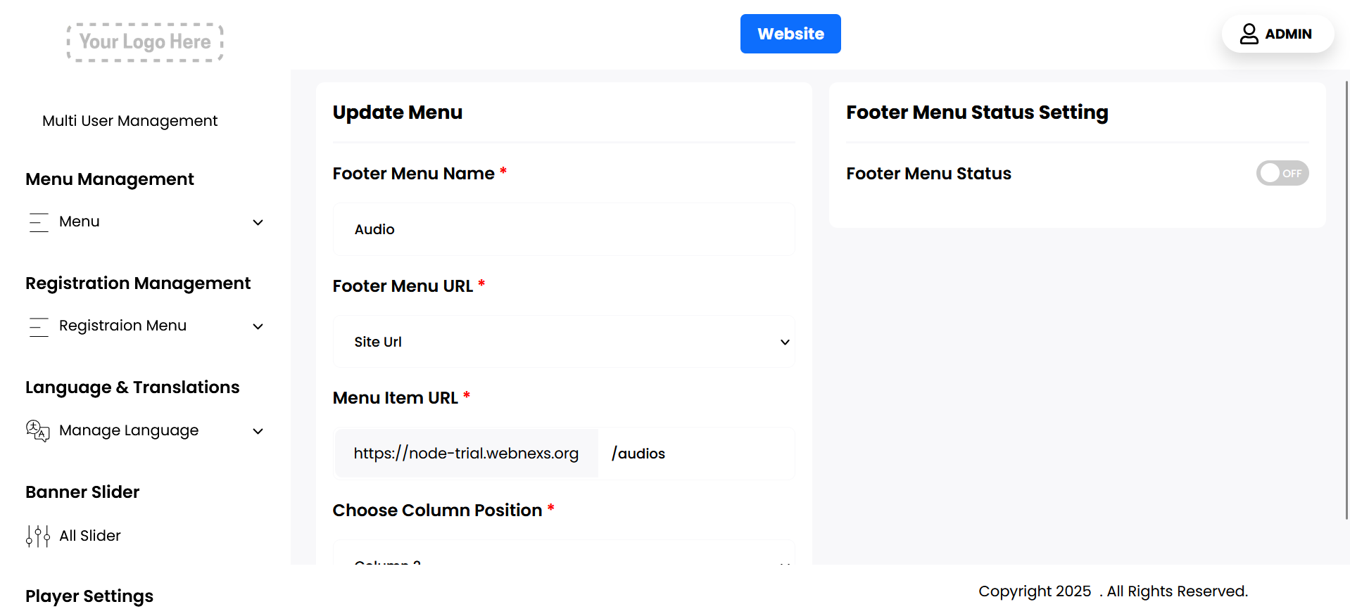 - Column Position: This indicates the specific column in which the menu will appear in the footer layout. You can adjust this position as needed to ensure the menu is displayed where you want it.