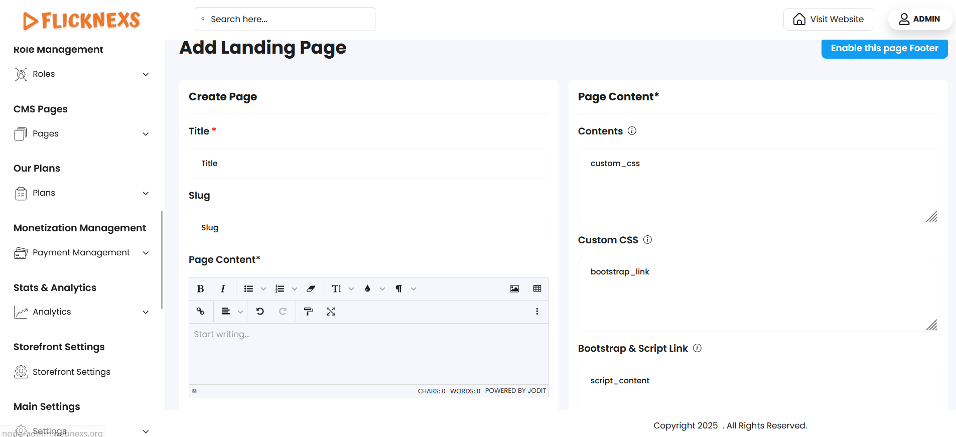 In the Landing Pages section, you have the option to create a new landing page tailored to your platform’s needs. This feature allows you to design and customize a unique page that aligns with your branding, offers specific content, or serves as a specialized entry point for your visitors. Here’s how you can create and configure a new landing page: