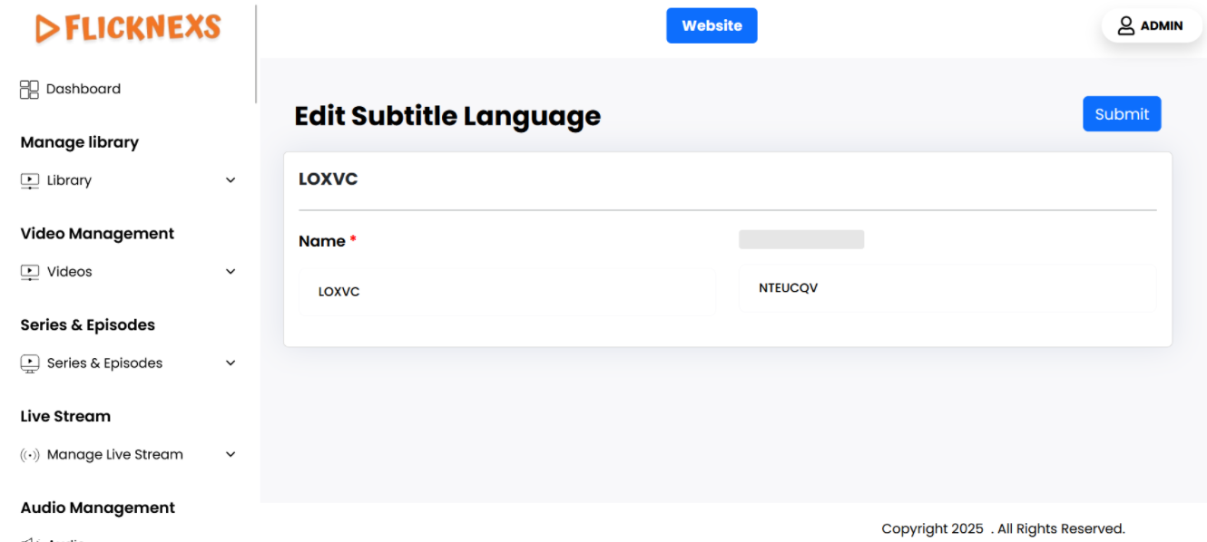 By providing these two fields, a new subtitle language can be created and added to your platform’s list, making it available for use in subtitle settings across the system.