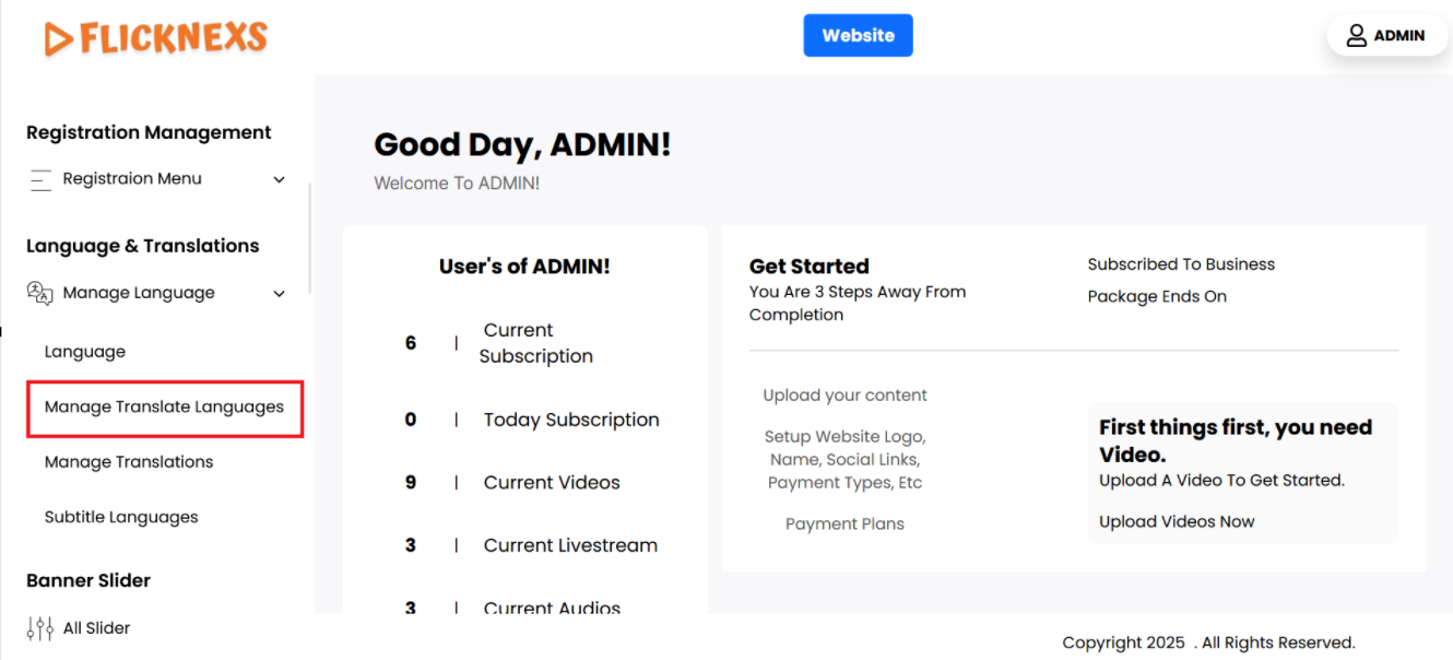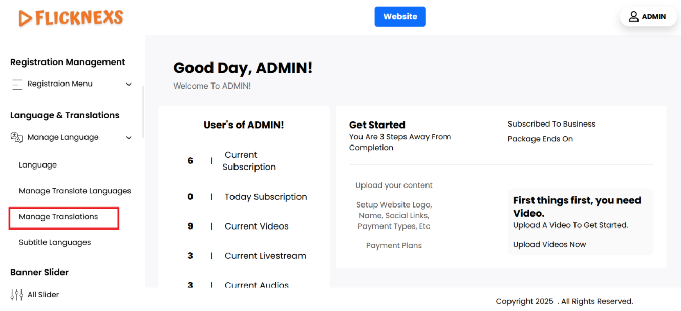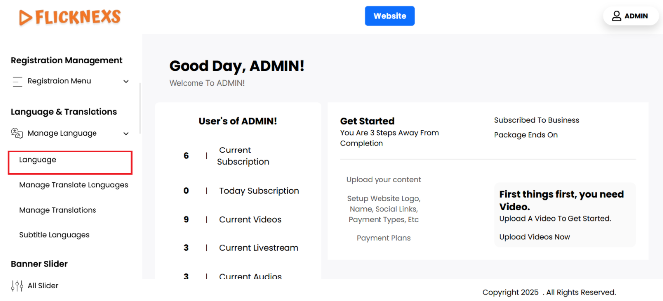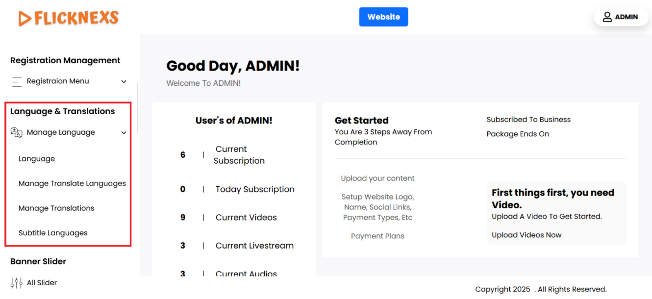 - Here, you will be able to select different languages, add new language options, or configure the translations for your platform. This section allows you to customize language-related features to ensure the platform is available in multiple languages or tailored to your audience’s preferences.