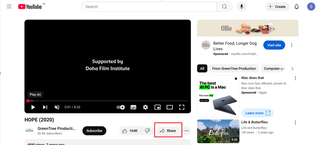- Click on the Share Option: Most video platforms provide a Share button or icon, typically represented by an arrow or a chain-link icon. Click this option.