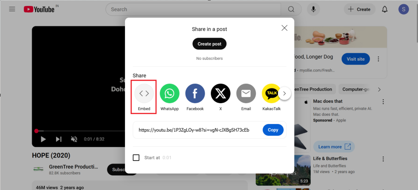 - Select Embed Option: After clicking share, you will often see multiple sharing options such as direct URL, social media sharing, and Embed. Choose the Embed option.