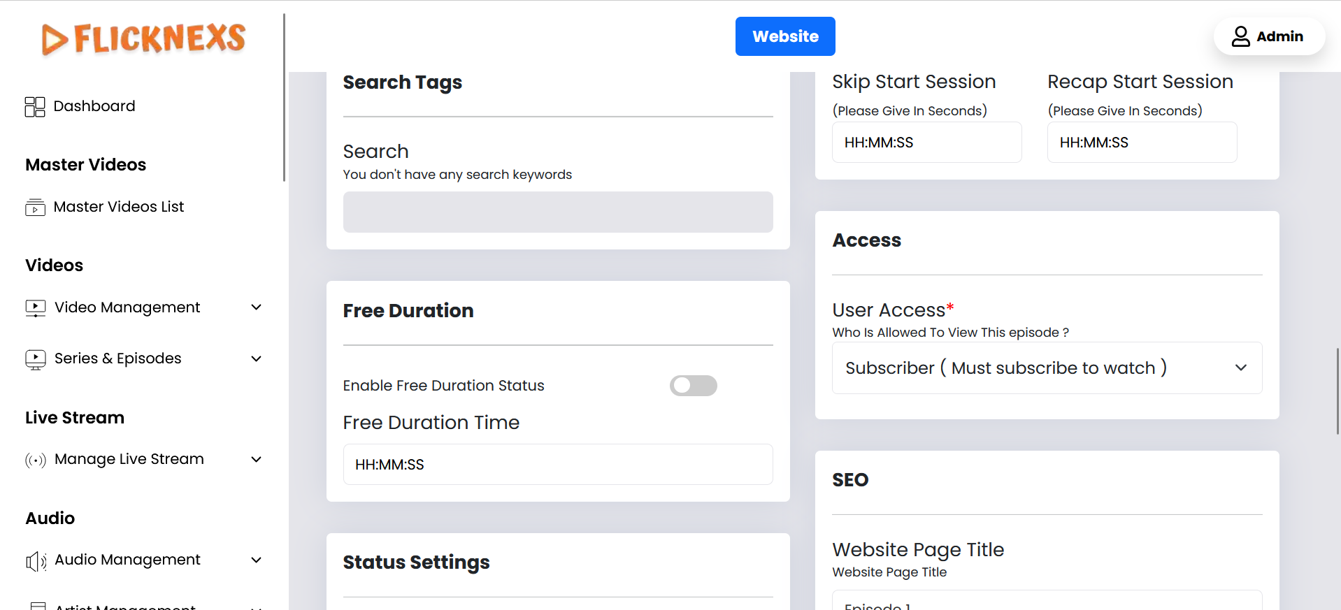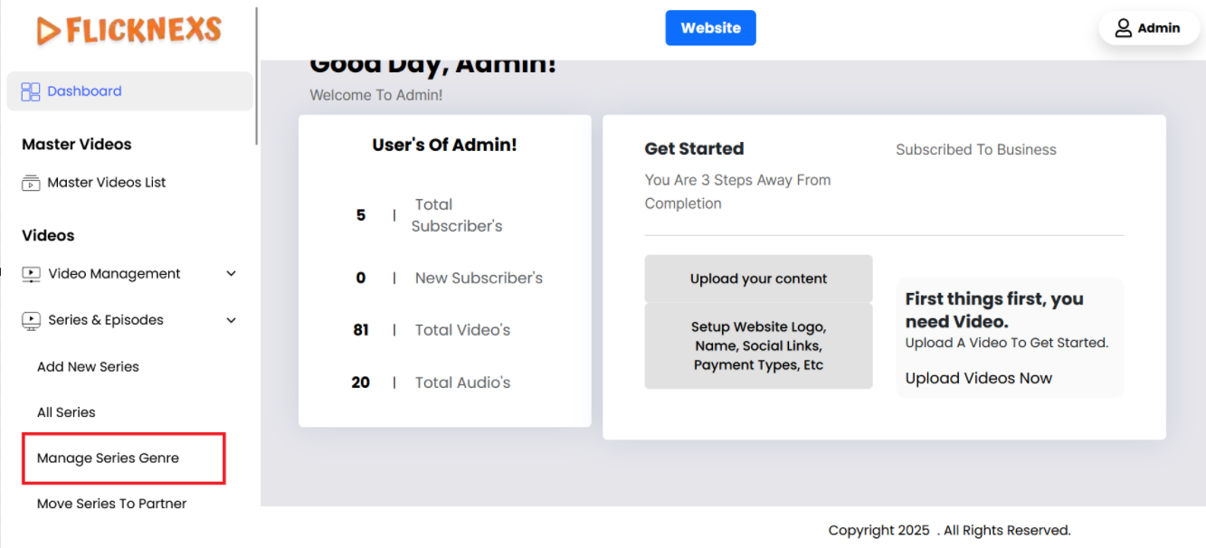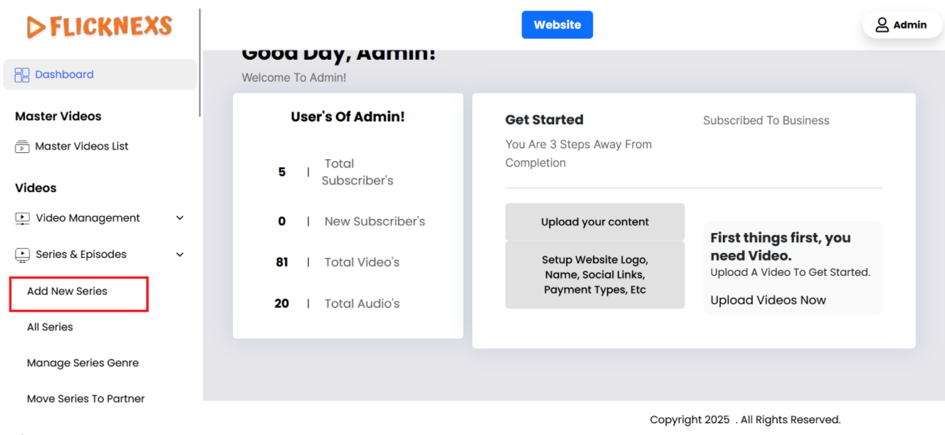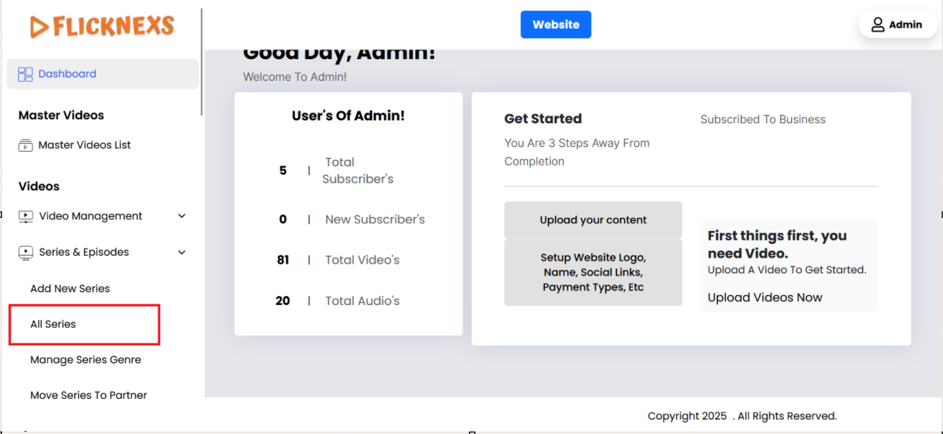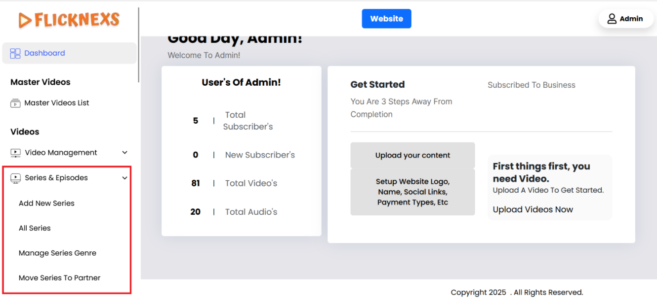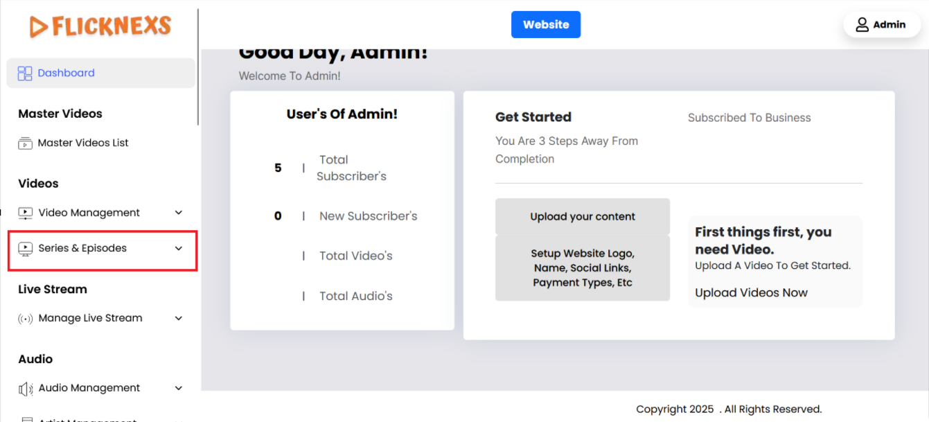 In the Admin panel, you will find various options listed on the left side of the page. To manage Series & Episodes, please follow these steps: