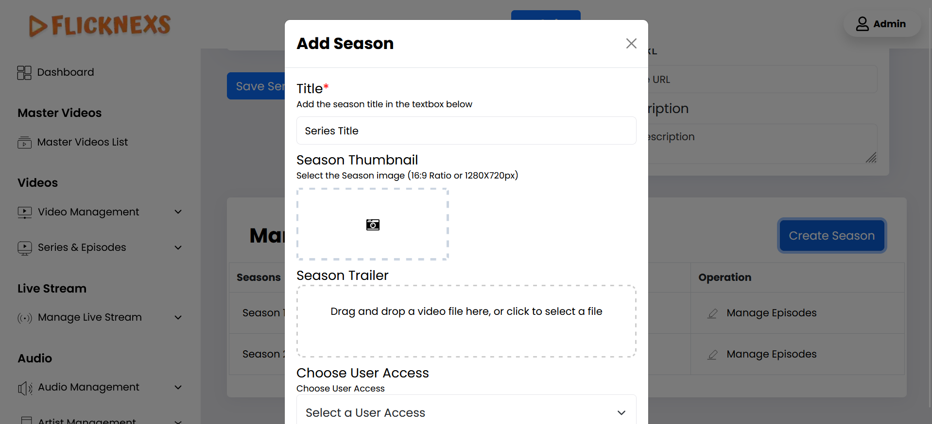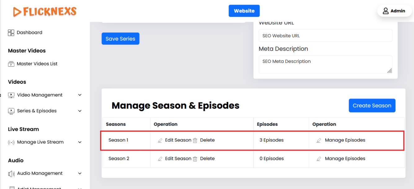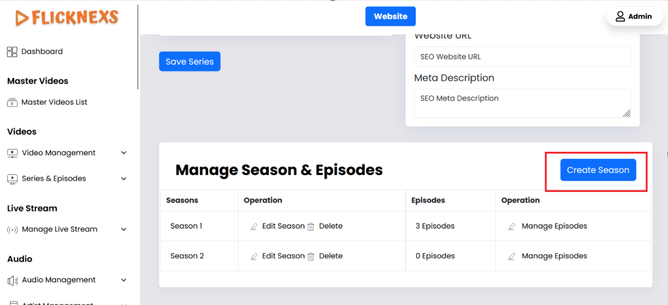 Once you’ve created a Series on your platform, you can further enhance its structure by adding seasons. This can be done by editing the existing Series. Here’s how you can manage this:
