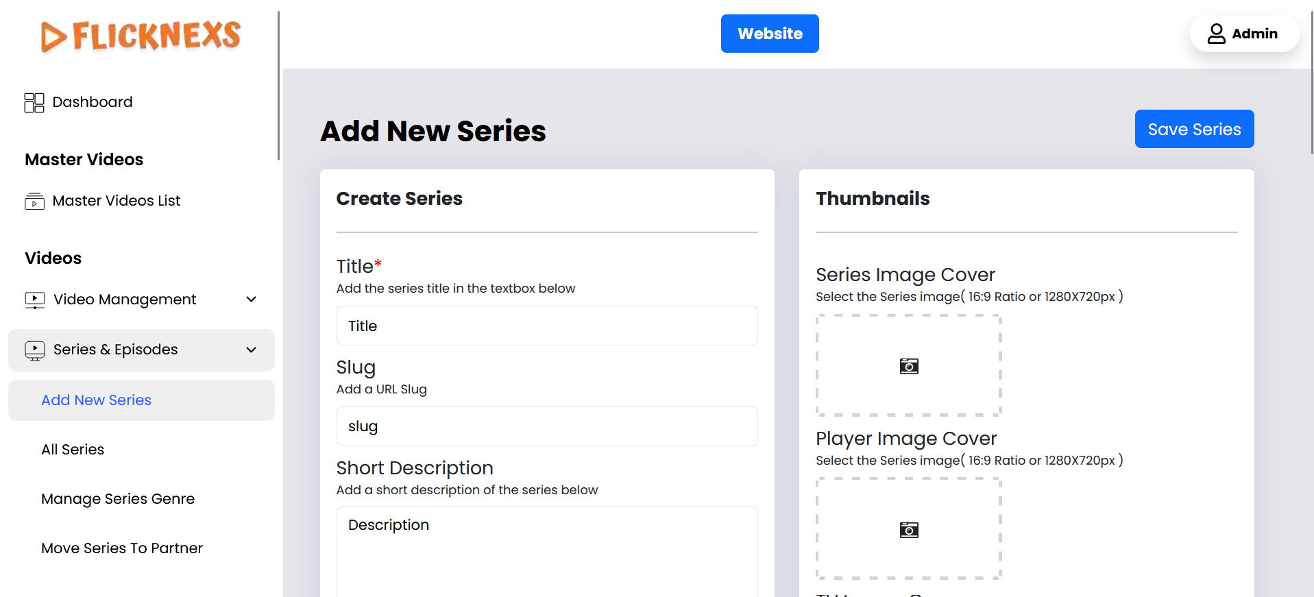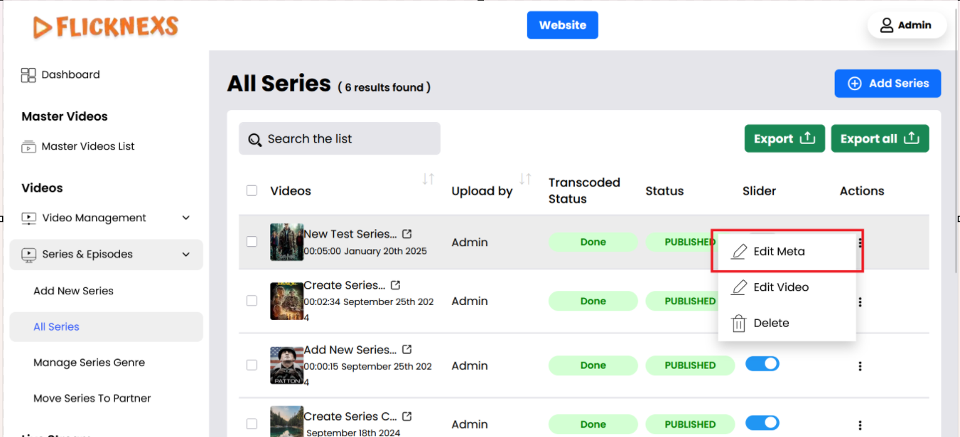 Following these steps, you can efficiently manage your Series content through the Admin panel.