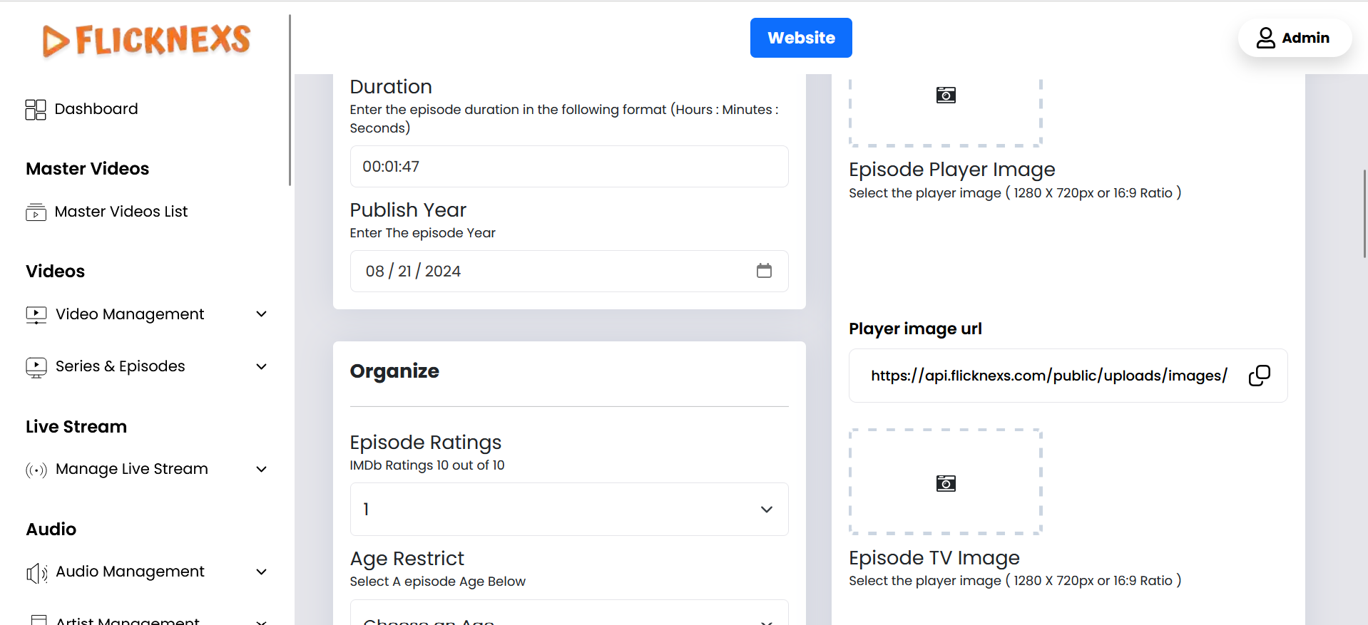 - Details: Enter the year the show was produced or first released. This information is often used in search filters and can be important for viewers looking for content from specific periods.