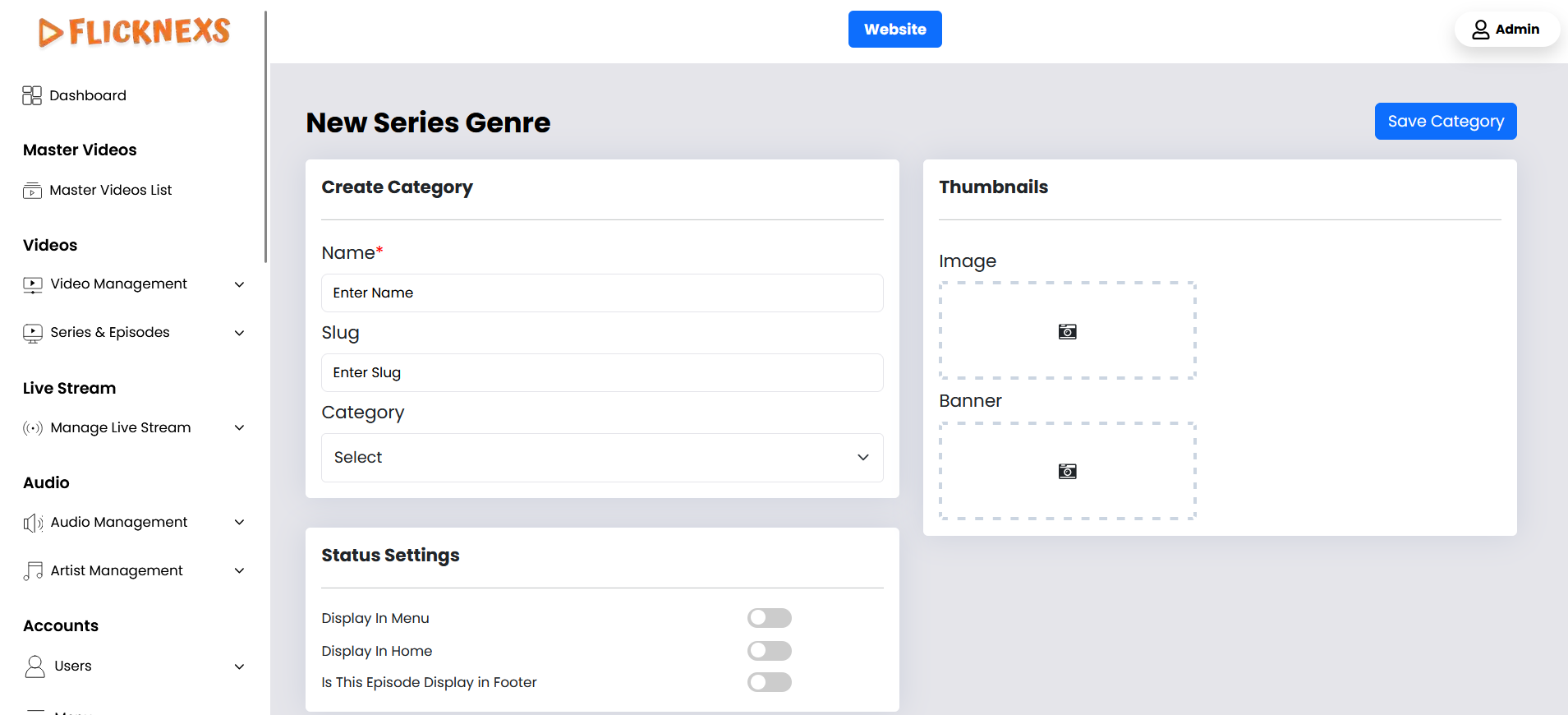 - Purpose: Choose whether this genre should be featured directly on the homepage.