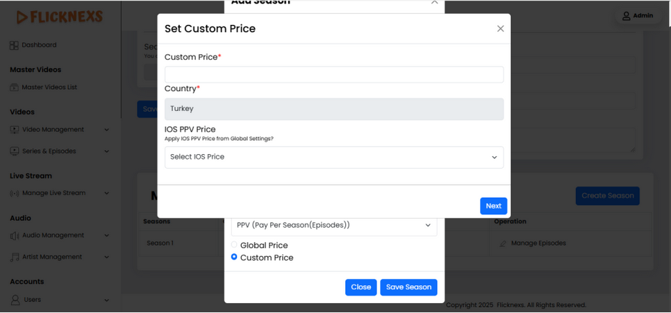 - Guest: Selecting this option means the season will be accessible to all users without any payment. It’s ideal for promotional content or to attract a wider audience.