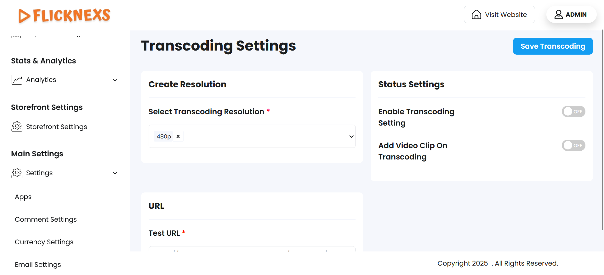 NOTE: Only if you enter the valid URL, the ‘Enable Transcoding Setting’ option will enable to toggle between ‘On’ and ‘Off’.