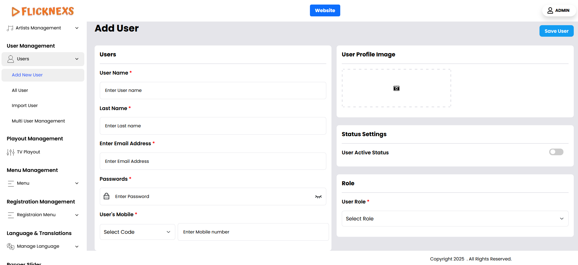- User Role: Select the appropriate role for the user from the options available, such as Registered User, Subscriber, or Admin. This will determine their access and permissions within the platform.