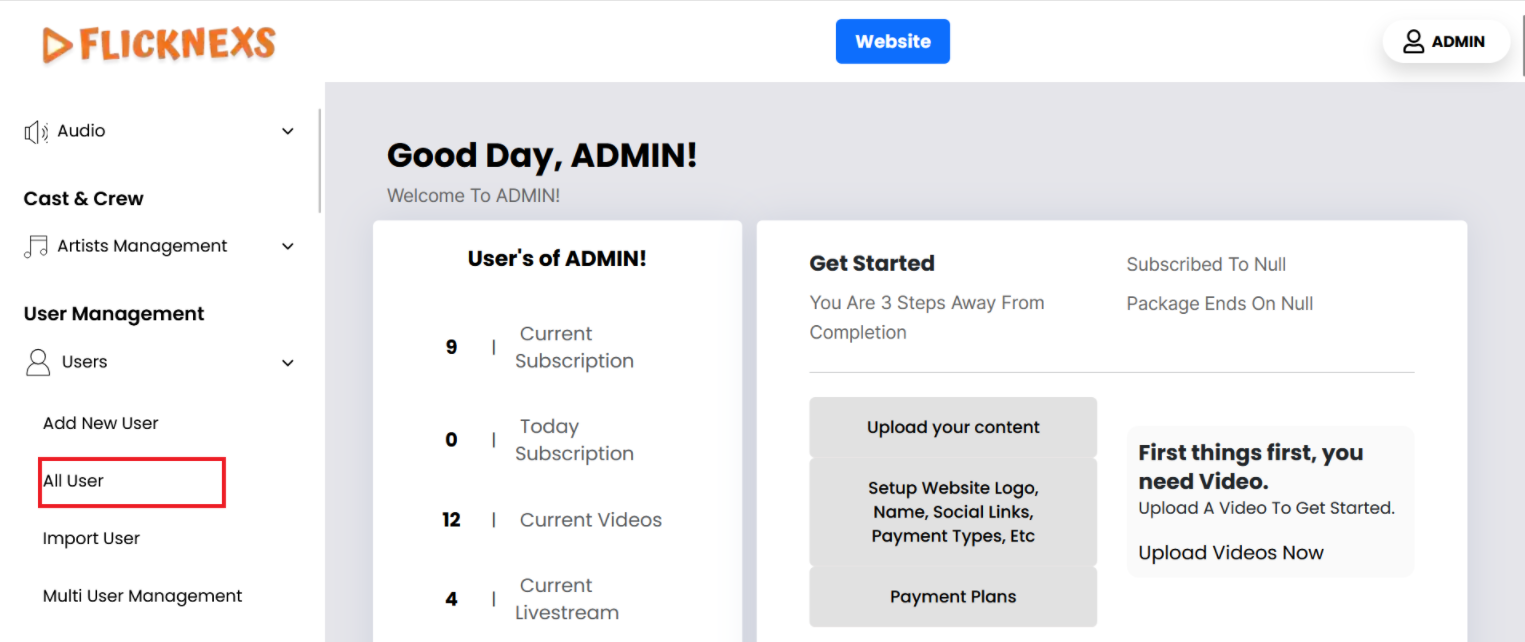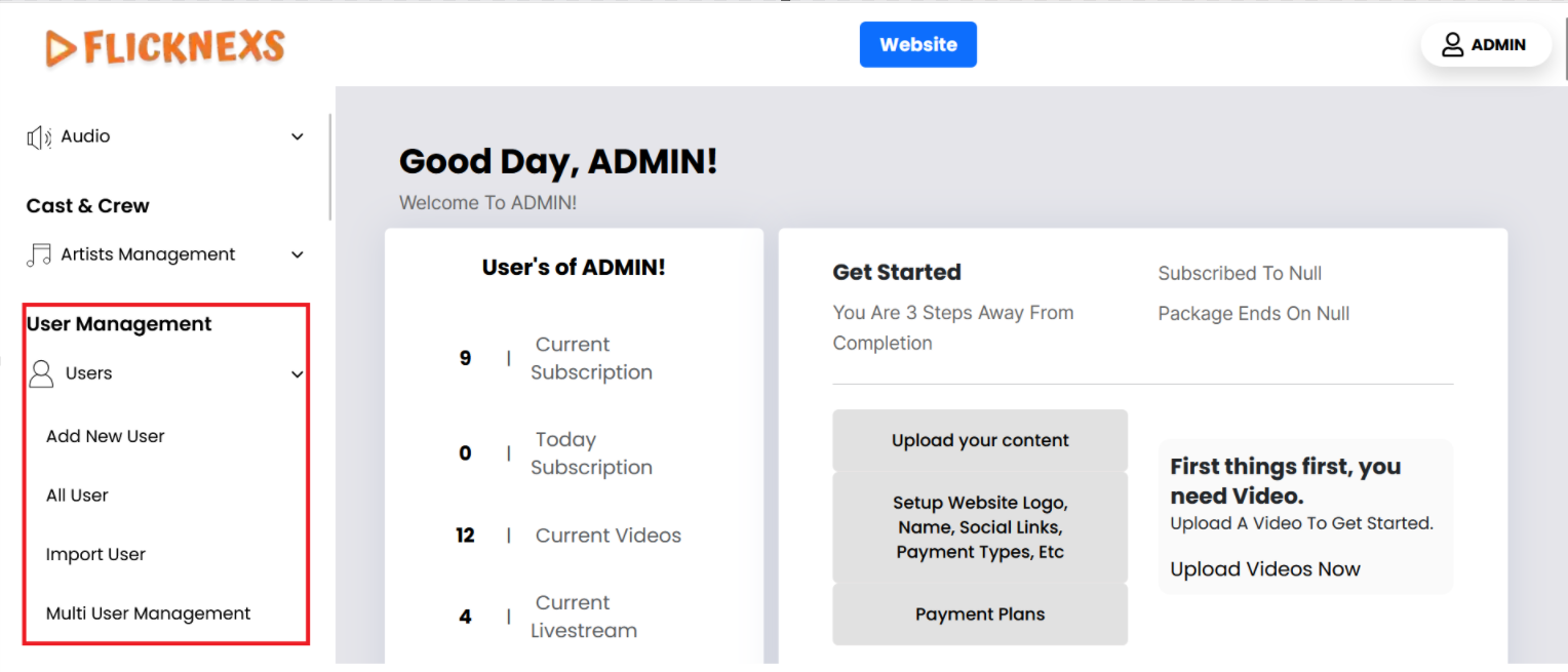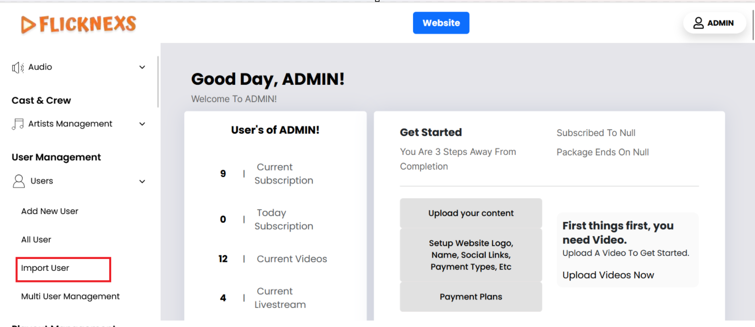 - Access the Users Section: In the admin panel, navigate to the “User Management” section and click on the “Users” option. From there, select “Import Users.”