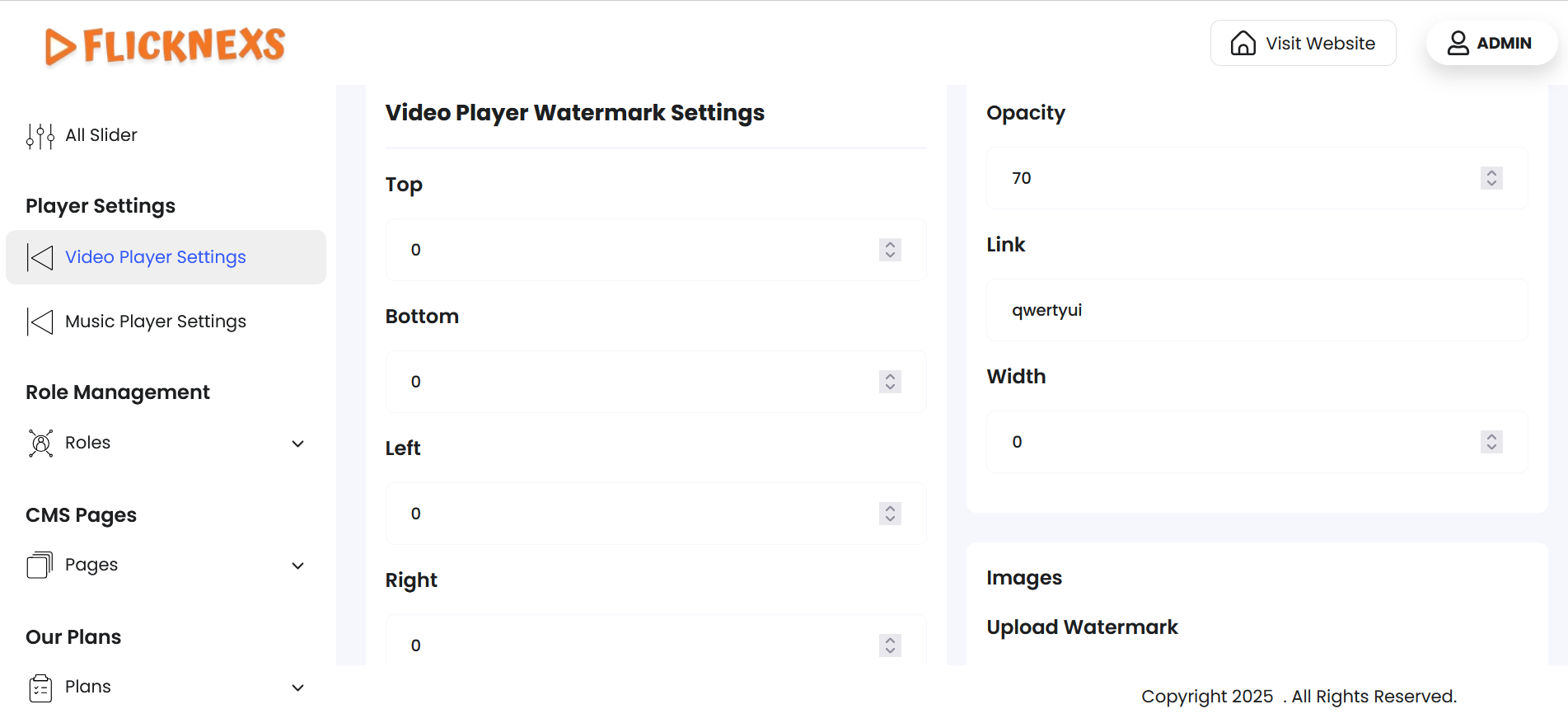 - You can choose to add a watermark to the player interface. When enabled, the watermark will be visible on the player itself, providing branding or protection.